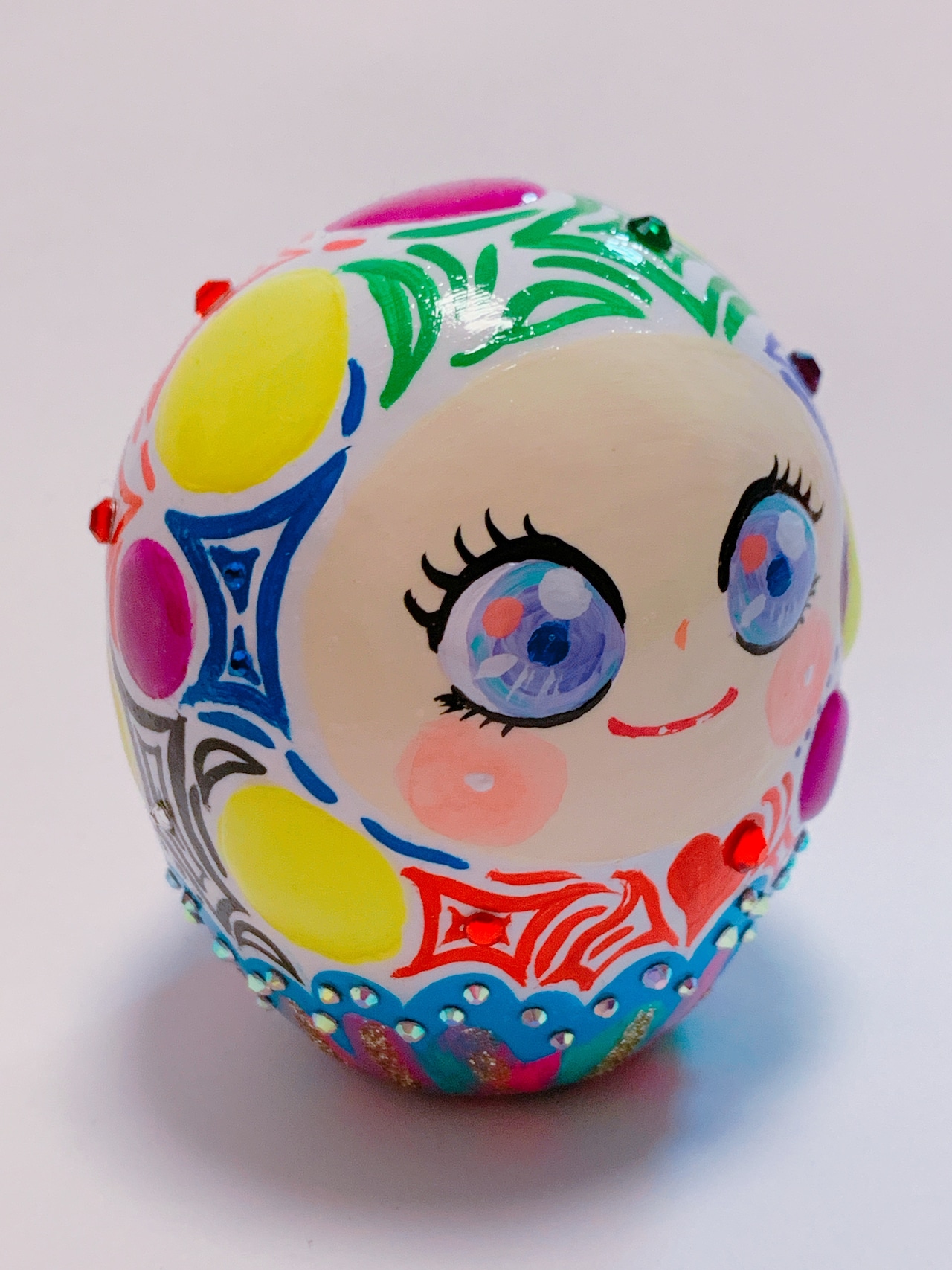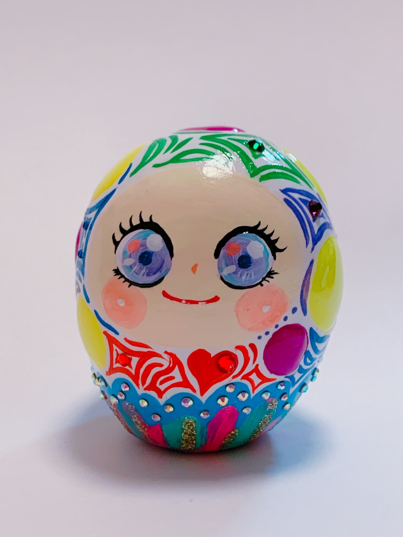 アクリル絵の具で色付けした、愛らしい妖精の人形です。底の穴は作業中にできてしまいます!ご了承ください。